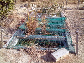 2003年9月のようすです。 左の方に見える白いはちは,シュロガヤツリです。 上にかけてあるのは,物が落ちないようにと考えられたネットです。 |
