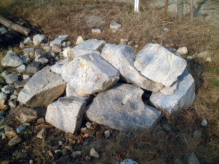 これも生き物のすみかとして,石を重ねておいています。一つ一つがかなり重いので,重ねるときは,機械を使いました。 上に乗ったり,むりに動かしたりしないようにしましょう。 石がつんである場所は2か所あります。 |