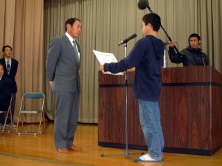 | 2002・12・20 感しゃ状わたし ビオトープを作るためにいろいろと助けてくださった方に,児童代表から感しゃ状をわたしました。 |