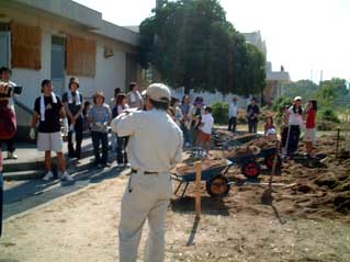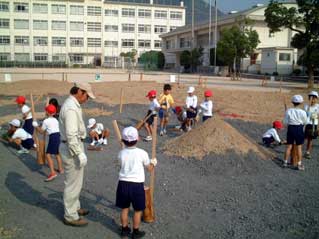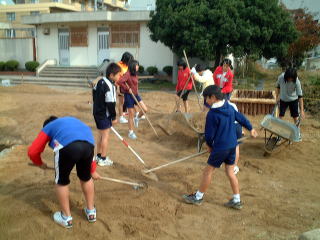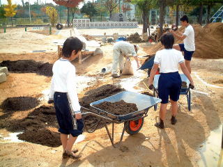 | 2002・10・15 子どもたちの活やく 全校児童がビオトープ作りのためにせいいっぱい力を出しました。 |