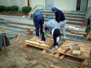 | 2002・11・24 門作り グランド側に門を作りました。ちなみに,フジだな横からも入ることができます。 |