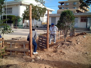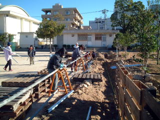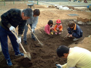 | 2003・2・12 かきねを植える 完成した後も,さまざまな木をいただくことができたため,周りに植えました。 |