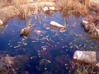 2003年5月の池のようすです。 植物はフサモていどで,まださっぱりとした感じです。 |