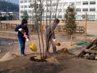 PTAの役員さんによる植樹です。 2003年1月7日に行われました。 |