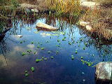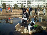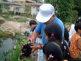 ひとこと声をかけていただければ,自由に見ることができます。ビオトープをつくるときから多くの地いきのかたに助けていただいていますし,けっして学校だけのものではありません。 ただし,黄色のロープの中の「生き物を守るところ」に入ってもらってはこまります。 |