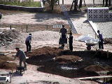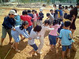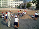 ねん土だけでなく,じゃり(小石)や田んぼの土もかさねて,そのたびに強くかためていきました。 子どもたちがふんだり,どうぐをつかったりしながら,大かつやくでした。 |