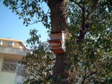 大きなものでは20メートルにもなるそうです。すばこは,2002年度の3年生が作ったものです。 ただこのクスノキは,ビオトープができる前からグランドにあって,ビオトープの中にとりこまれたものです。 |